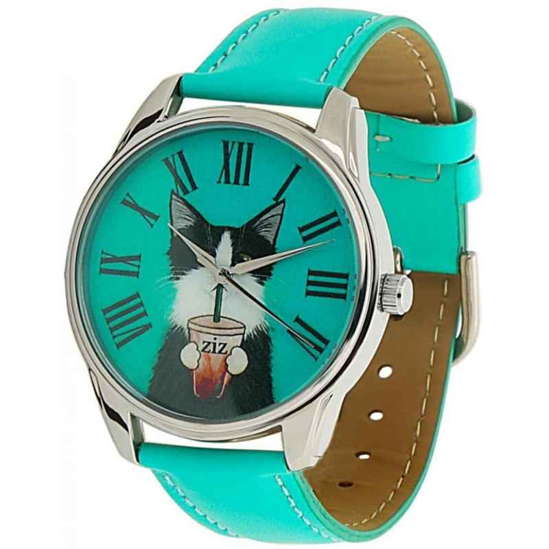 Часы ZIZ маст-хэв "Кот со стаканом". Милые женские часики с котиком на циферблате. Индикация — римск..