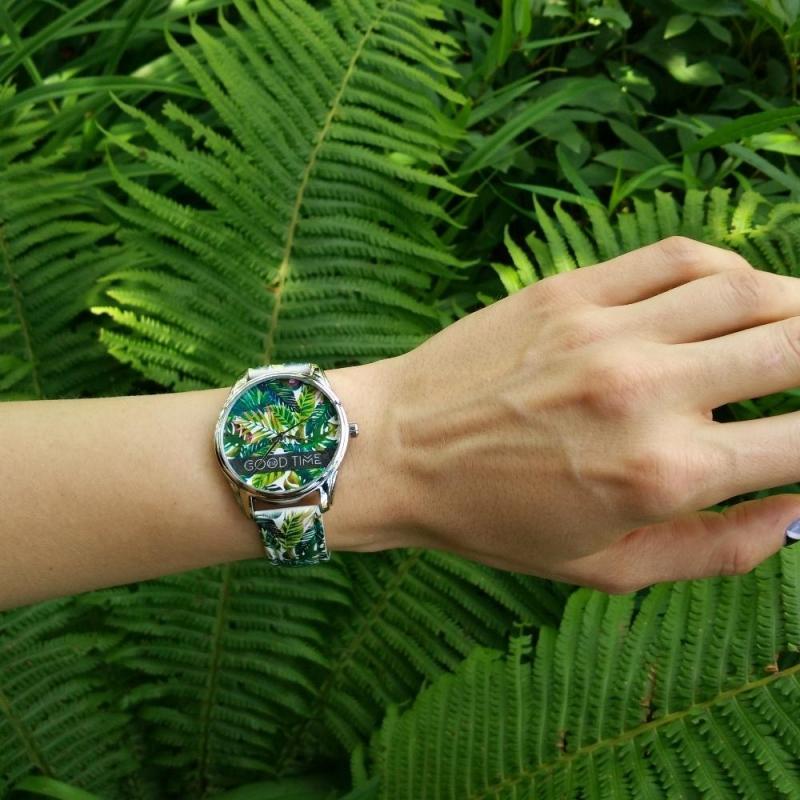 Часы ZIZ арт "Пальмовые листья". Корпус часов латунь, задняя крышка из нержавеющей стали. На цифербл..