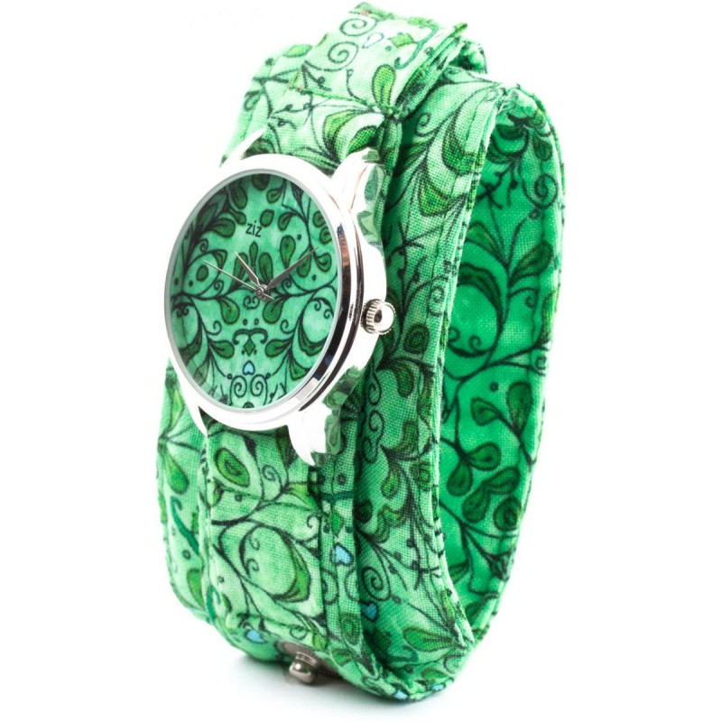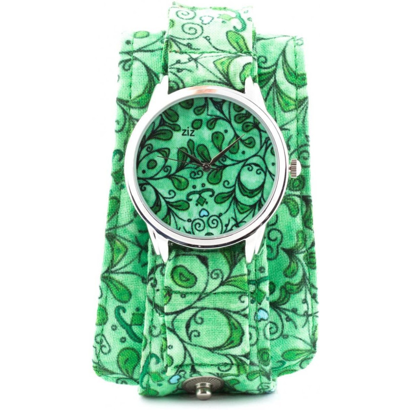 Часы ZIZ тканевые "Салатовые лепесточки". Корпус часов латунь, задняя крышка из нержавеющей стали. С..