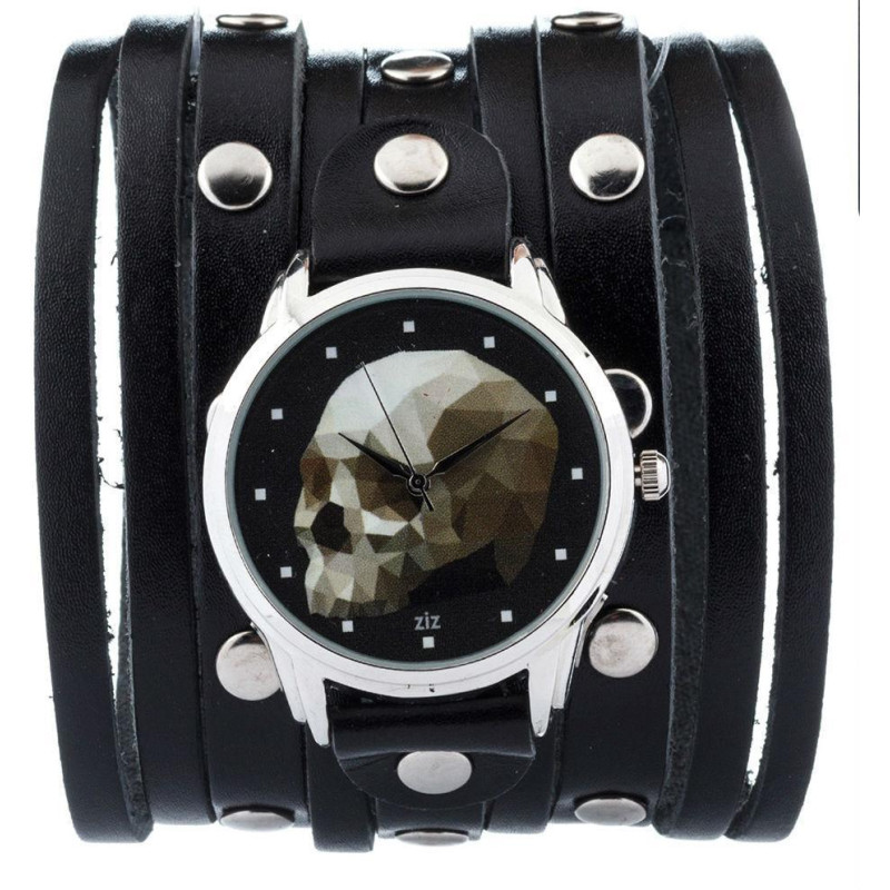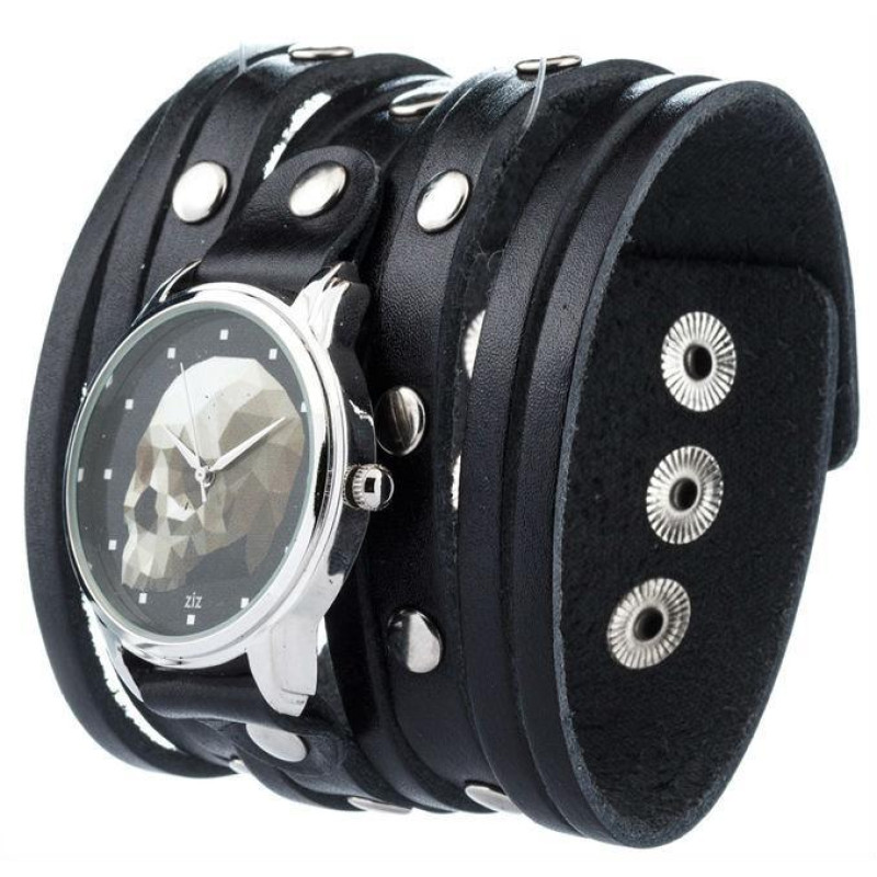 Данная модель получила название "Череп кубизм". Индикация - метки. Ремешок выполнен из кожи, чёрного..