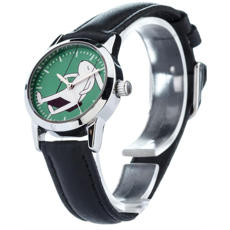Данная модель получила название "Качелька". Ремешок выполнен из кожи, чёрного цвета. Индикация - мет..
